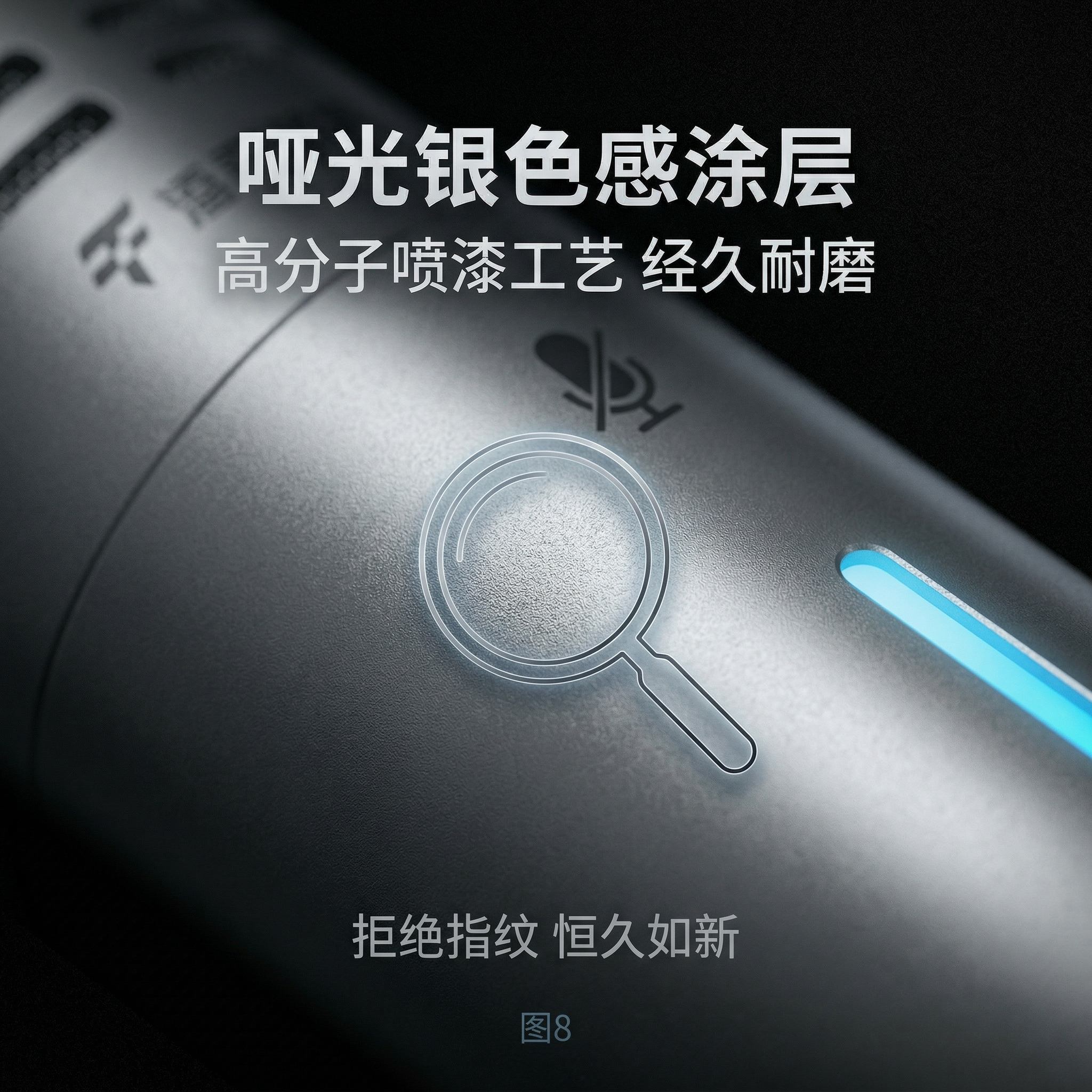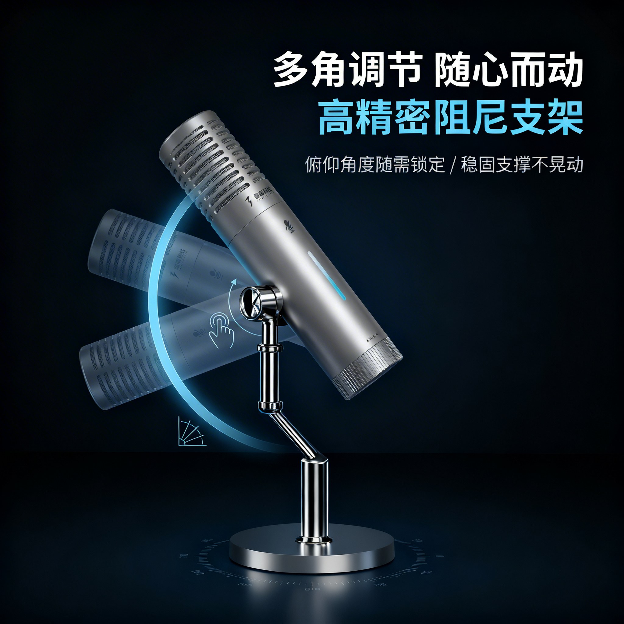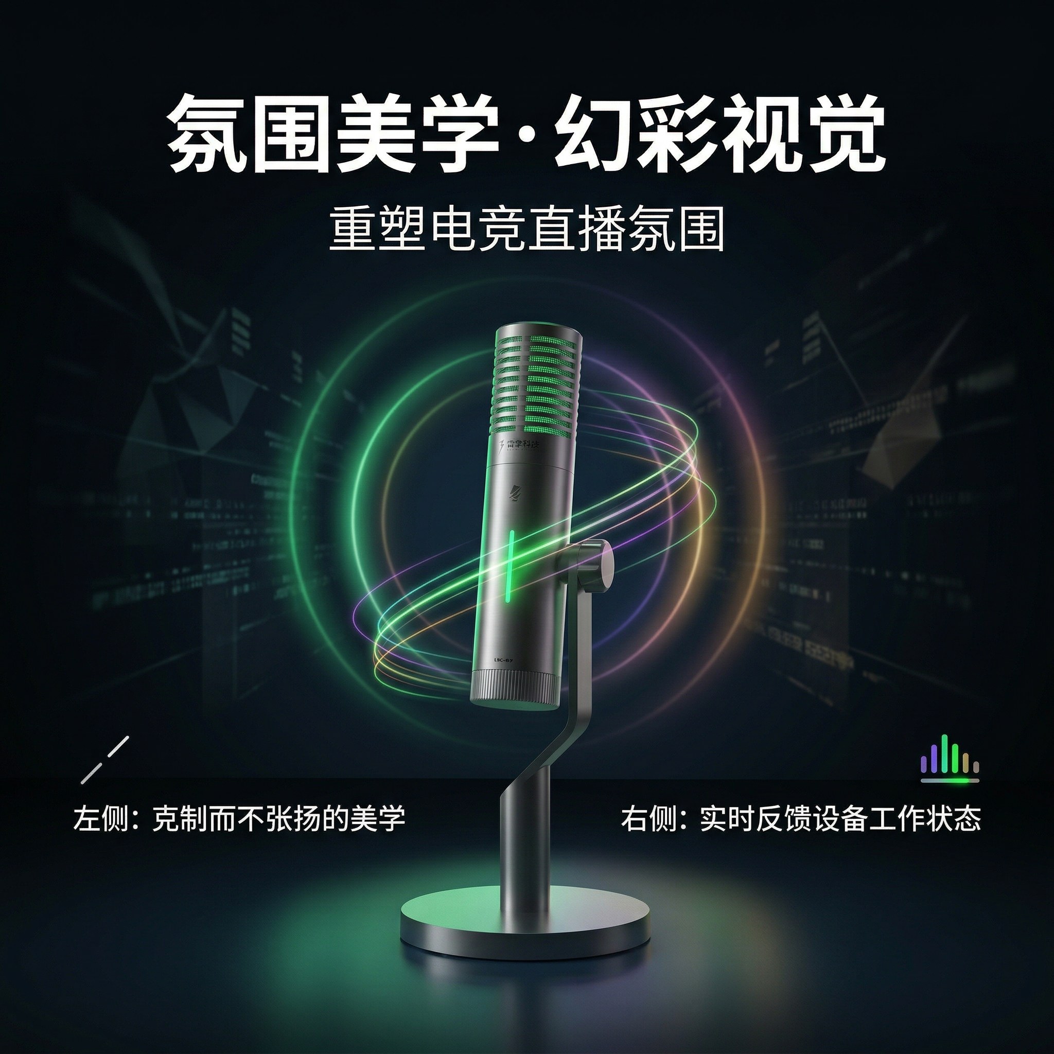 打破极简设计的沉闷感,将 RGB 动态灯效作为核心视觉亮点,为直播注入炫酷张力。灯光随音量调节逐级变化,灯效设计遵循 “克制而不张扬” 的原则,与纤细机身形成巧妙呼应,既不会干扰直播画面,又能通过光影变化直观反馈设备状态,实现功能与美学的双重统一。