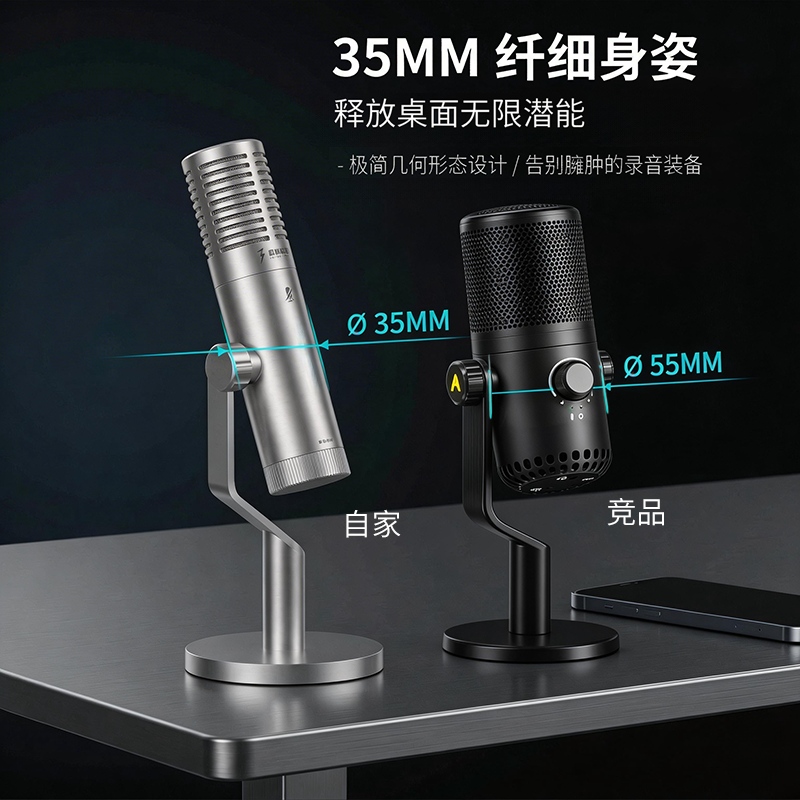 秉持 “去繁就简” 的交互逻辑,彻底告别传统麦克风的繁琐旋钮,以单一旋钮替代复杂操作键位。一键触摸即可实现静音控制,配合 USB 即插即用、无需驱动的设计,真正做到 “一秒上手”,让新手也能即刻掌控专业收音。这种极简交互不仅简化了操作流程,更通过 “形态暗示功能” 的设计巧思,让用户无需学习就能本能操作,完美契合现代直播对高效、便捷的核心需求。