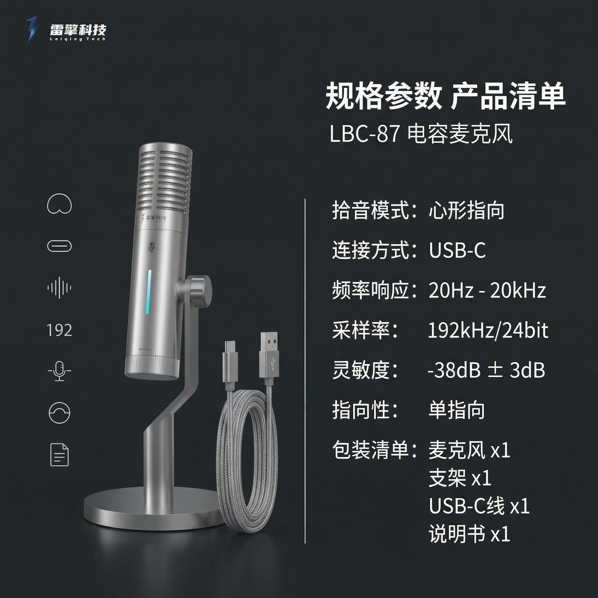 以 “35MM 极致微形,容纳万象功能” 为设计核心,LBC-87 颠覆传统直播麦克风的体积认知,将极简主义 “少即是多” 的哲学推向新高度。放弃冗余的旋钮与复杂线条,采用仅 35MM 的纤细圆柱机身,以最凝练的几何形态,将独立 APP 控制、一键触摸静音、RGB 灯效等核心功能巧妙集成,实现 “体积最小化,体验最大化” 的设计突破,重新定义便携专业直播设备的美学边界。