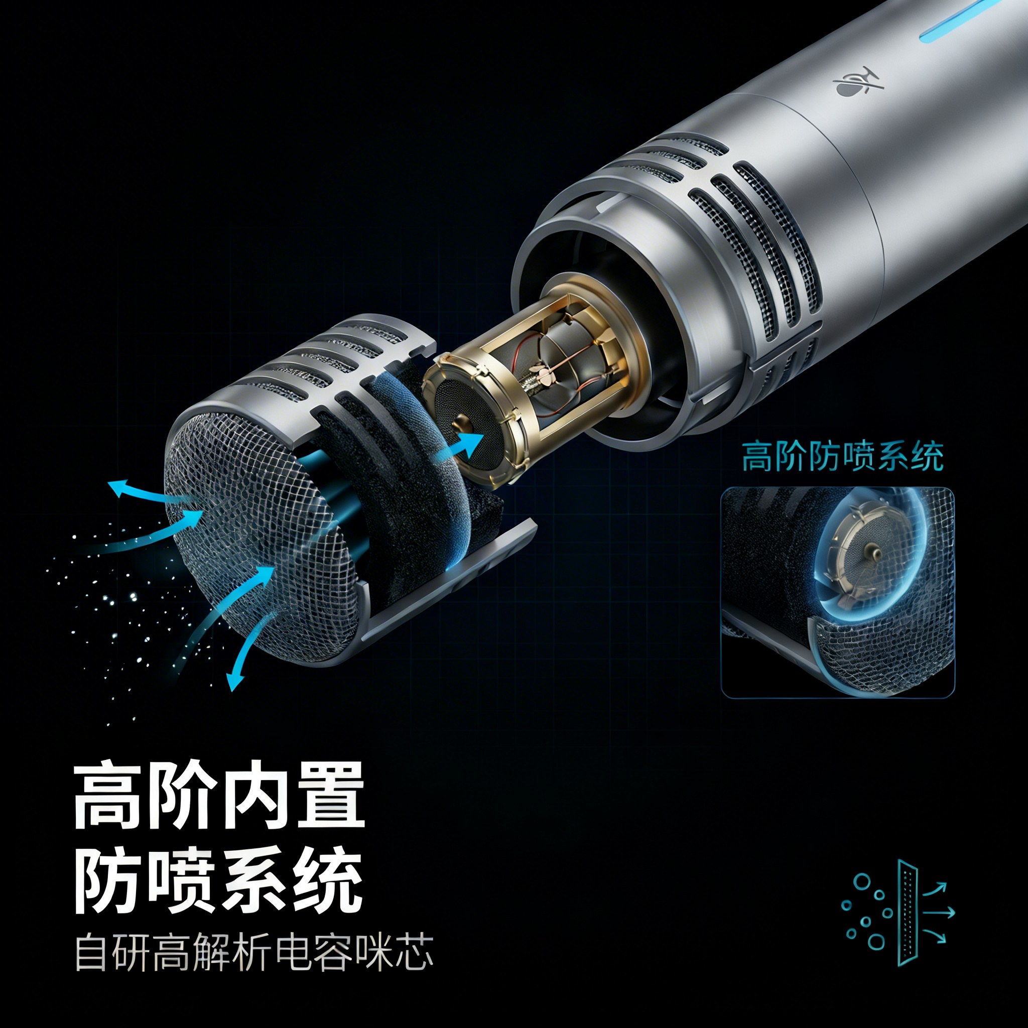 科学阻隔爆破音与气流干扰,有效过滤杂音,即便近距离发声也能保持音质干净清澈,无需额外配备防喷罩,让直播收音更省心、输出更纯粹。