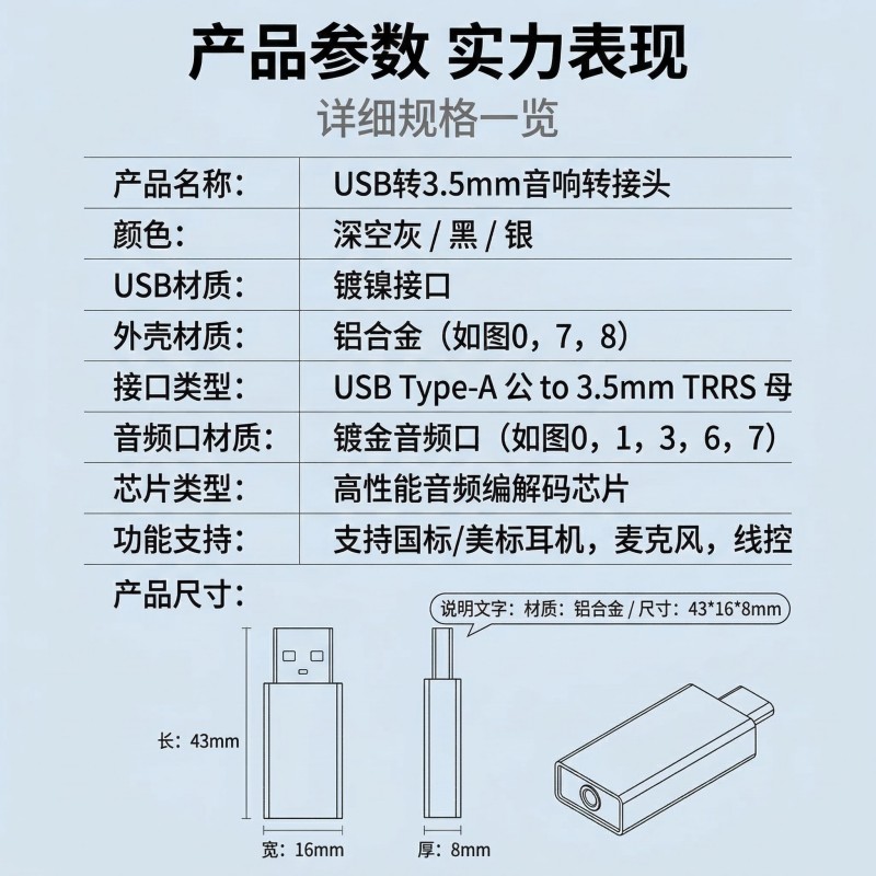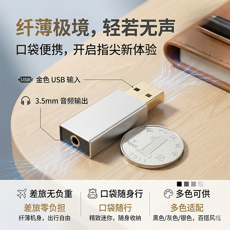 无论是连接音响打造居家音乐空间、电脑耳机语音通话、主机游戏开黑,还是用旧耳机搭配新电脑使用,它都能轻松胜任。提供深空灰、黑色、银色三种配色,简约利落的外观适配各类桌面风格,是实用与颜值兼备的全场景音频配件。