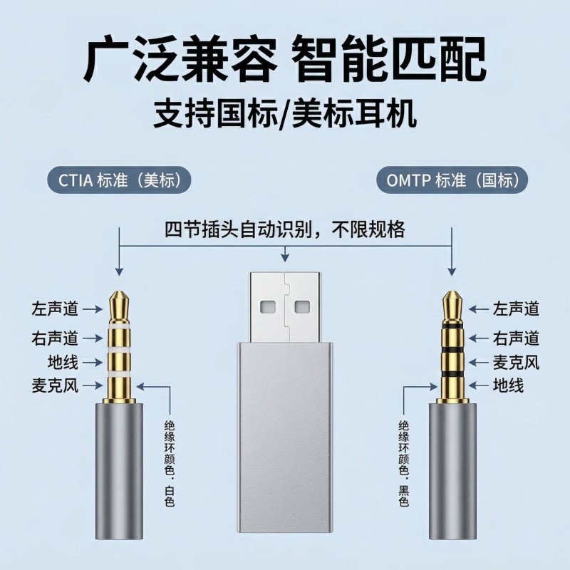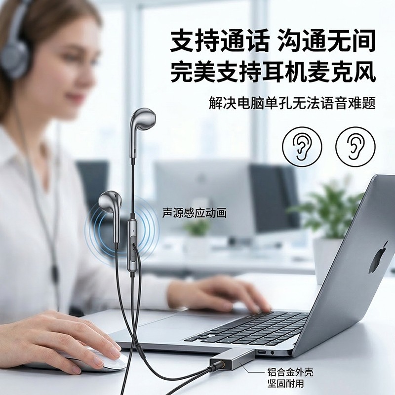 自动识别国标 / 美标耳机(CTIA/OMTP 标准),无需手动切换,适配绝大多数手机耳机、电脑耳机。完美支持耳机麦克风通话与线控功能,线上会议、网课、游戏开黑时语音清晰无延迟,听歌时可直接用耳机调节音量、切歌,听歌通话两不误,沟通顺畅不卡顿。