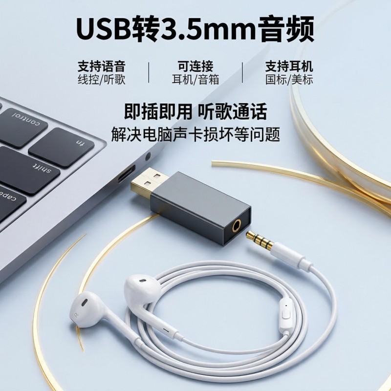无需安装任何驱动程序,插上 USB 接口就能直接使用,兼容 Windows、Mac OS、Linux 等主流操作系统,同时适配台式机、笔记本、PS4/PS5 游戏机等设备。轻松解决电脑单孔无法语音、板载声卡故障、3.5mm 接口损坏等问题,一键恢复耳机、麦克风功能,让老设备 “重获新生”。